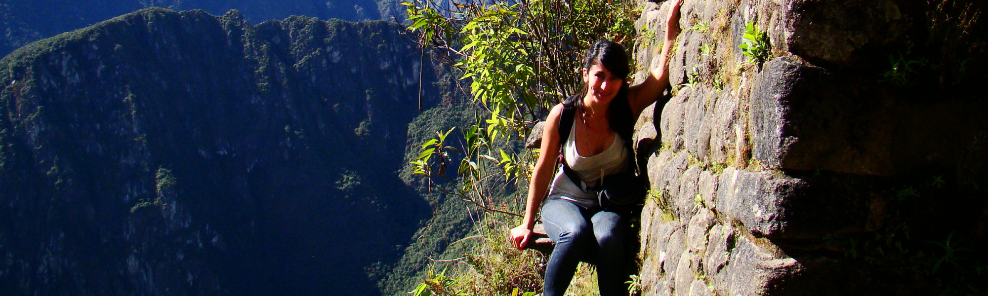 Montse halfway the Huayna Picchu trail, taking a couple of minutes in the shade to enjoy the views of the Urubamba or Willkamayu river. Later she was able to see how the river bends its way through the Sacred Valley.